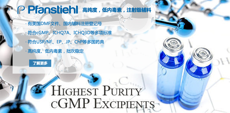 “熱烈祝賀Pfanstiehl的注射級甘氨酸Glycine(G-140)喜獲CDE登記號F20250000403, 這是Pfanstiehl產品獲得的第18個CDE登記號!”甘氨酸在醫藥輔料制劑中應用廣泛,, 可作為緩沖劑,增溶劑,穩定劑等,具有諸多優勢。Pfanstiehl秉承一貫高品質理念,為滿足全球生物制藥行業對于高品質甘氨酸的需求,隆重推出的注射級甘氨酸Glycine (G-140), 具有超高純度,超低內毒素,超低金屬殘留的特點,單獨檢測29種金屬離子,并且新增DNA,RNA,DNA酶,RNA酶和脂肪酶,亞硝酸鹽等多項質量指標的檢測,符合多國藥典規定(USP, EP, BP, JPE, ChP),可用于生物治療性藥物和疫苗的生產。產品信息:· 產品名稱:Glycine, High Purity, Low Endotoxin, Low Metals, USP, EP, BP, JPE, ChP (G-140)· 中文名稱:甘氨酸· 分子式:C2H5NO2· 分子量:75.07 g / mol· CAS號:56-40-6· 產品貨號:G-140產品特點: · 超高純度,超低內毒素,超低微生物含量,超低金屬雜質殘留· 質量指標新增DNA,RNA,DNA酶,RNA酶,脂肪酶和亞硝酸鹽檢測· 符合多國藥典:USP, EP, BP, JPE, ChP· 符合ICH Q3D標準· 符合GMP標準· 已獲DMF和CDE登記號 產品應用:· 緩沖劑· 穩定劑· 增溶劑如果您對Pfanstiehl注射級別Glycine G-140感興趣,歡迎聯系Pfanstiehl 中國區代理商北京西美杰科技有限公司獲得如下詳細的產品概況說明文件和測試樣品。Pfanstiehl Inc.最新產品系列如下,歡迎聯系北京西美杰科技有限公司獲取100g裝免費樣品。北京西美杰科技有限公司為Pfanstiehl中國代理,為客戶提供完善的技術支持與售后服務。歡迎撥打西美杰客服電話400-050-4006或者登陸網站www_xmjsci_com.1ztw.com了解更多信息。 更多>